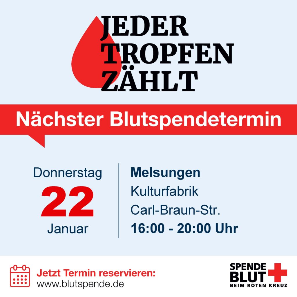 Warum nicht direkt mit einer gemeinsamen, schnellen und einfachen guten Tat ins neue Jahr starten? Allein in Hessen und Baden-Württemberg werden täglich rund 3.000 Blutkonserven benötigt, um eine lückenlose Versorgung von Patient*innen aller Altersklassen zu gewährleisten.
